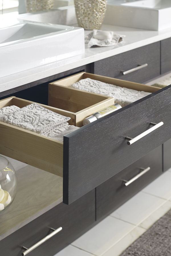 Maximize sink storage in every way. Our U-shaped Drawer prepped for plumbing allows a chase to surround the pipes, and gives previously unusable space new life.